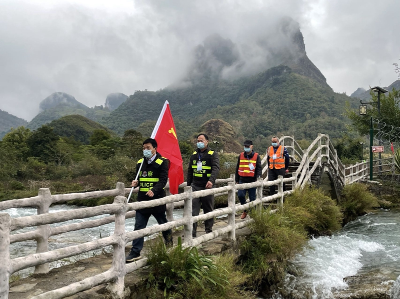 “五星红旗迎风飘扬,胜利歌声多么响亮……”12月31日,为以崭新的面貌喜迎新年,大新县硕龙镇隘江村狮子山封控点的值守人员带着对新年的期许,对值守辖区的国旗进行统一更换,营造出浓浓的节日氛围和爱国情怀。
